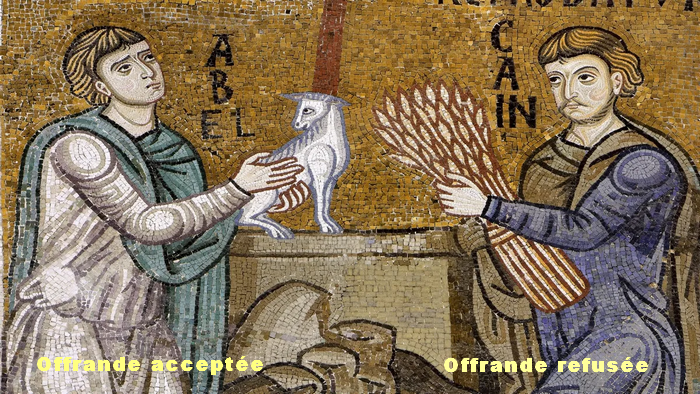 Lorsque Dieu demanda de Lui offrir un sacrifice, que firent les deux frères ? Abel apporta les « premiers-nés de son troupeau et leur graisse » (Genèse 4 :4) Caïn, au contraire, fit « une offrande des fruits de la terre » (verset 3). « L’Éternel porta un regard favorable sur Abel et sur son offrande ; mais il ne porta pas un regard favorable sur Caïn et sur son offrande. Caïn fut très irrité, et son visage fut abattu » (versets 4-5).